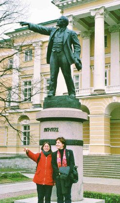 TeilnehmerInnen vor Lenin-Denkmal/participants in front of the Lenin statute